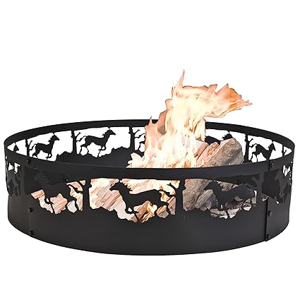 Is a large, sturdy 28-inch diameter steel fire ring with unique and stylish animal decorative cutouts.